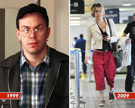 即使去年兩兄弟的新片《極速賽車手》(Speed Racer)上映,他倆也沒現(xiàn)身宣傳,低調(diào)異常,直到上禮拜,有神通廣大的狗仔,終于拍到“拉娜”出現(xiàn)在洛杉磯機場,而且原本的一頭褐發(fā)全都改成金色,裝扮入時,完全沒有拉里·沃卓斯基的影子。