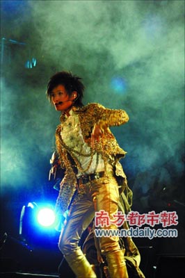 李宇春身著金色皇袍華麗登場(chǎng),國(guó)王般的氣勢(shì)統(tǒng)治了上周六晚的廣州天河體育館!袄钣畲骸段业摹2007巡回演唱會(huì)”上座率超過(guò)8成,老歌新歌共唱了20多首,《皇后與夢(mèng)想》、《我》、《STOP》、《漂浮地鐵》等都讓粉絲又叫又笑,李宇春全場(chǎng)換了5套服裝。演出中仍保持一貫的載歌載舞,帥氣硬朗。不過(guò)這一場(chǎng)演唱會(huì)最與眾不同的便是李宇春終于真真正正穿上了裙子。白上衣,黑裙子,赤裸的潔凈的腳丫——沒(méi)錯(cuò)了,這真是李宇春。當(dāng)她這身行頭出來(lái)開始唱慢歌時(shí),歌迷激動(dòng)地大喊“漂亮”,不少人甚至流下了眼淚。