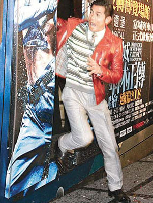 據(jù)香港東方日?qǐng)?bào)報(bào)道,城城昨日在亞洲國際博覽館舉行“郭富城舞林正傳演唱會(huì)延續(xù)篇2008”記招,現(xiàn)場(chǎng)擺放了多個(gè)城城個(gè)唱造型的巨型紙板人,而臺(tái)中就是一卡1比1尺寸的“富城機(jī)鐵列車”布景板。當(dāng)滿心歡喜的城城走入“列車”拍照時(shí),布景板突然向外跌翻,幸好身手敏捷的城城飛身用雙手撐住布景板。城城成功營救“列車”后,即喜上眉梢自認(rèn)超人。其后大會(huì)宣布城城成為首位在機(jī)鐵列車車身有肖像的香港藝人。