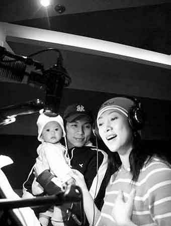翁虹為新單曲錄音 老公抱女兒全程陪同(圖)