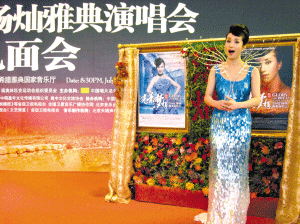民歌四小花旦之一的湯燦將于7月15日在希臘雅典國立音樂廳舉辦“光榮與夢想·迎奧運2008湯燦雅典獨唱音樂會”。這是中國歌唱家首次在奧運會的故鄉(xiāng)希臘舉辦個人獨唱音樂會。