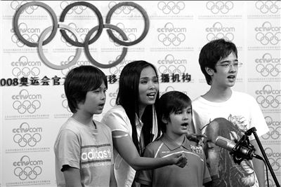 由中央電視臺(tái)新聞?lì)l道主辦的“2008奧運(yùn)手機(jī)觀察員”征集活動(dòng)正在進(jìn)行,歌手韋唯昨晚進(jìn)棚錄制了這次活動(dòng)的主題曲《眺望五環(huán)》和宣傳片。和韋唯一起出現(xiàn)在錄音棚里的,還有她的三個(gè)兒子。身為中國(guó)女足形象大使和青島環(huán)球形象大使,韋唯笑稱奧運(yùn)門票太搶手,希望大使的身份能讓自己到女足和帆船比賽現(xiàn)場(chǎng)為中國(guó)選手吶喊加油。