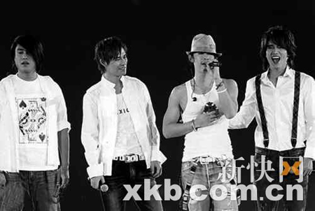 早前有指F4為了日本巡回演唱會而各懷鬼胎,不愿透露個人的表演環(huán)節(jié)以暗地比拼。在日前舉行的第2場F4橫濱演唱會上,四人以行動力證“兄弟情”,先是朱孝天和周渝民(仔仔)隔空互獻飛吻,言承旭(Jerry)又和仔仔頭貼頭合唱,場面溫馨。