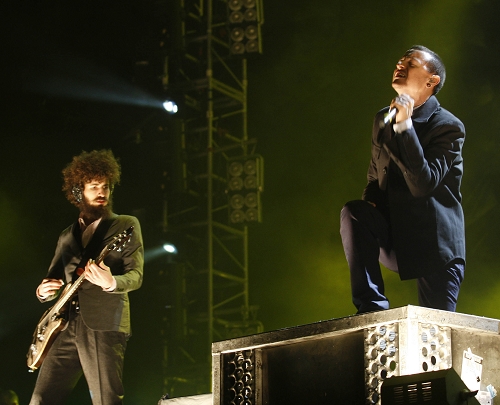 容易受傷的林肯公園主唱Chester(右)史訓(xùn)鋒 早報資料