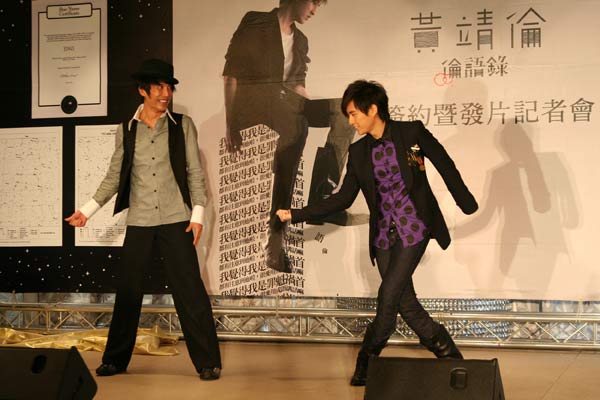 隨后記者會(huì)的重頭戲---簽約儀式正式開始,華納唱片大中華總經(jīng)理王蓓芬(帕梅拉)和黃靖?jìng)愐黄鹱叩奖嘲宓挠液蠓,兩人一同揭開星星布幕,亮出星型的合約書,在大家的見證下簽名,代表華納唱片正式簽下這位“超級(jí)星光大道”第三屆最閃亮的一顆星,并象征黃靖?jìng)悓⒊蔀楦鑹W耀的一顆星星,希望他用簡(jiǎn)單的歌聲打動(dòng)人心。帕梅拉大費(fèi)周張買了一顆價(jià)值1萬(wàn)美金的“星星”當(dāng)做禮物送給黃靖?jìng)悾@顆特別為黃靖?jìng)愑嗁?gòu)的星星以黃靖?jìng)愑⑽拿癑ING”命名。收下了這個(gè)特別的禮物,黃靖?jìng)惛袆?dòng)的說(shuō)不出話,不敢相信自己擁有了一顆“真的星星”。 除此之外,華納音樂(lè)更是準(zhǔn)備了另一項(xiàng)大禮:當(dāng)主持人宣布?xì)g迎知名舞蹈老師張勝豐出場(chǎng)時(shí),黃靖?jìng)愡有點(diǎn)訝異,原來(lái)是唱片公司認(rèn)為黃靖?jìng)悤?huì)唱又很會(huì)說(shuō)話,但唯一欠缺的就是肢體動(dòng)作,在他身上總是會(huì)發(fā)現(xiàn)同手同腳、舞步不在節(jié)奏上的情形。然而,既然要發(fā)片成為正式的歌手,當(dāng)然不可以忽略這個(gè)部份。張勝豐老師搞笑地拿出節(jié)拍器當(dāng)場(chǎng)要黃靖?jìng)怱OLO一段舞步讓老師看看,臺(tái)下歌迷也不斷鼓噪著,黃靖?jìng)惛蠋煹氖痉秳?dòng)作做一次,果真很不協(xié)調(diào),完全不在拍子上,笑得杉哥在一旁大方宣布:“舞蹈集訓(xùn)沒(méi)有期限,讓靖?jìng)惿险n上到擺脫肢障封號(hào)為止!倍旱萌珗(chǎng)哈哈大笑。