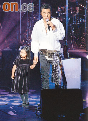 鐘鎮(zhèn)濤與小女兒一起登臺,場面溫馨。香港《太陽報》圖