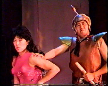 對(duì)于蘇醒,老導(dǎo)演梁伯龍連一舉一動(dòng)一顰一笑,都親身示范,讓蘇醒受益匪淺。梁伯龍更讓蘇醒大膽地在臺(tái)上翹起了蘭花指扮演女角,一步三扭地走小碎步。蘇醒說(shuō):“我沒(méi)有表演的經(jīng)驗(yàn),還是在學(xué)習(xí),還不適應(yīng)沒(méi)有麥克風(fēng)的表演,不知道在臺(tái)上做什么好,但我想會(huì)逐漸喜歡上話劇表演的。這次我對(duì)扮演的角色很喜歡,因?yàn)檫@是一個(gè)喜劇角色,而且臺(tái)詞很少!