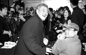 也許是一直沒(méi)有在春晚彩排現(xiàn)場(chǎng)出現(xiàn),趙本山吊足了媒體記者的胃口,以至于在昨天的發(fā)布會(huì)現(xiàn)場(chǎng),主創(chuàng)剛一合影結(jié)束,半秒鐘不到就圍上去二三十架機(jī)器,而且每一個(gè)麥克風(fēng)都伸到趙本山前面不足5厘米的地方,別說(shuō)采訪了,連對(duì)話都很難進(jìn)行。
