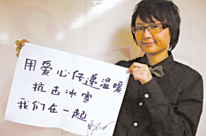 一場由中國曲藝家協(xié)會發(fā)起組織的“愛心化冰雪 真情暖人間——曲藝界抗冰雪賑災大義演”慈善活動,將于2月5日晚19:30在北京民族宮大劇院舉辦。曲藝界同仁紛紛主動提出進行賑災演出,陜西快板名家張保和趕寫趕排新節(jié)目,主辦單位之一的中國廣播藝術團為演出無償提供舞美、燈光、音響,民族宮大劇院為演出提供場地,北京人民廣播電臺作為協(xié)辦單位為義演滾動播發(fā)消息,著名演員姜昆、李金斗、鞏漢林、金珠、鞠萍、李揚等人不僅無償演出,而且還要在晚會現(xiàn)場捐款。據(jù)悉,主辦單位會在演出后,將所有演出收入、善款送給有關部門。