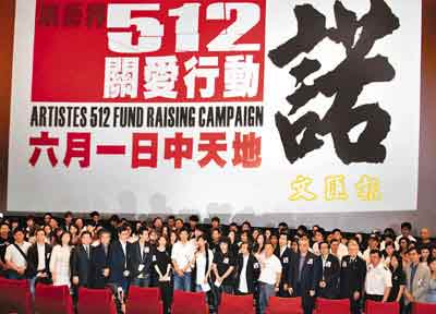 據(jù)香港文匯報(bào)報(bào)到,昨日近兩百余演藝界人士參加了記者會(huì),短短十五分鐘談話便結(jié)束,會(huì)上先由活動(dòng)召集人劉德華發(fā)言,他先為各界的支持致意,華仔又哽咽地說(shuō):“四川大地震發(fā)生,演藝界短短時(shí)間內(nèi)發(fā)起行動(dòng),大家勞心勞力,但這份熱情不是一時(shí)三刻,重建需時(shí)要三、五、七年,重建災(zāi)民的生活,是我們的承諾,我特別多謝中聯(lián)辦及香港電影發(fā)展基金于行動(dòng)中的協(xié)助,以及西九龍中天地六月一日借出場(chǎng)地舉行賑災(zāi)大匯演,由于時(shí)間倉(cāng)卒,不夠時(shí)間向有關(guān)政府部門申請(qǐng),但深信活動(dòng)會(huì)得到大家的響應(yīng)及支持,寄望天佑四川,天佑中國(guó)!
