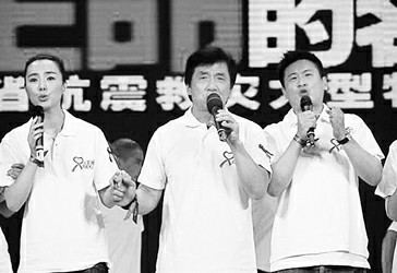張國(guó)立、陳道明、蔣雯麗、宋祖英、葛優(yōu)等從北京趕來,成龍、譚詠麟、劉德華、張學(xué)友、黎明等從香港趕來,吳宗憲、陶喆、王力宏、蘇有朋、孫燕姿等從海峽彼岸趕來……如此強(qiáng)大的明星陣容,成了可歌可泣的災(zāi)區(qū)英雄和群眾的配角,晚會(huì)上最打動(dòng)人心的是發(fā)生在災(zāi)區(qū)的真實(shí)故事,而明星們則集體變成了故事員。這些故事讓人在精神上經(jīng)受洗禮,讓心靈受到了震撼。而明星們的動(dòng)情歌聲和朗誦,則烘托和渲染了這些感人的故事。