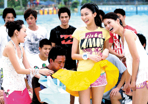 6月28日,2008年度香港先生和香港小姐各12名選手齊聚番禺長(zhǎng)隆水上樂(lè)園,為比賽進(jìn)行外景拍攝。港姐紛紛以比基尼亮相,港男搶鏡頭意識(shí)不輸女生,有胸肌的時(shí)刻擺出健美姿勢(shì),身材略單薄的也全程擺出笑容。
