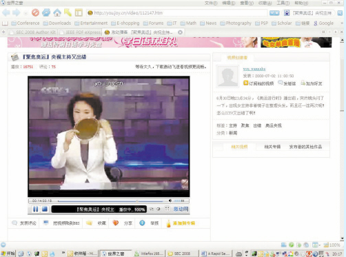 在這段19秒的視頻中可以看到,片頭剛出現(xiàn)“奧運(yùn)進(jìn)行時”的標(biāo)題,背景畫面是福娃舉著火炬奔跑過長城、鳥巢,接著便插入了廣告。問題出現(xiàn)在第14秒,鏡頭突然切到了女主播對鏡梳妝的畫面,當(dāng)時女主播拿著鏡子正在整理頭發(fā),那面大鏡子在整個屏幕上相當(dāng)?shù)膿屟,畫面差不多有一秒鐘的時間;蛟S是導(dǎo)播發(fā)現(xiàn)了失誤,立刻將畫面切回到正常廣告中……一定是忙中出錯,切換到廣告的鏡頭居然鬼使神差地再一次回到了女主播身上,依然還拿著鏡子。在女主播兩次不合時宜的出鏡之后,節(jié)目才恢復(fù)了正常。貼出這段視頻的網(wǎng)友放炮說:“6月30日晚23點(diǎn)34分,《奧運(yùn)進(jìn)行時》播出前,突然鏡頭閃了一下,出現(xiàn)女主持拿著鏡子在整理頭發(fā)。而且還一連兩次呢!怎么CCTV又出錯了呢?”在強(qiáng)大的網(wǎng)友面前,央視的失誤似乎無地隱藏。對于央視又一次的穿幫,不少網(wǎng)友都顯得習(xí)以為常的樣子,直接用各種的表情進(jìn)行回復(fù),也有個別網(wǎng)友表示這次的問題出在導(dǎo)播身上,不要老是拿主持人說事。