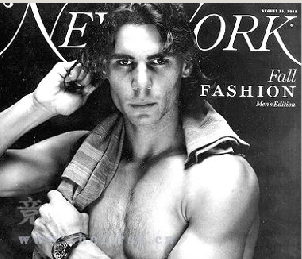 奧運會網(wǎng)球男子單打新科冠軍納達爾成為時尚界的新寵。他赤裸上身大展肌肉,成為即將于本月25日出版的美國時尚雜志《紐約》雜志男女雙刊男子部分的封面人物,與他對應的女子部分的封面人物則是前名模克里斯蒂·布林克利。