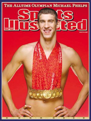八“金”加身的菲爾普斯為美國體育雜志拍攝的封面