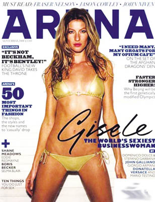 巴西超模吉賽爾·邦臣登上了《ARENA》雜志的封面,并拍攝了一組火辣撩人的寫真。寫真中,她身著金色比基尼做出魅惑的動作和表情,十分性感。