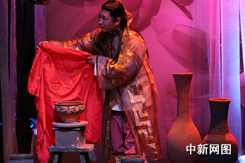 該劇是以發(fā)生在澠池仰韶村一個(gè)陶藝世家的制陶故事為背景,通過(guò)秦王的兒子邂逅彩陶女所產(chǎn)生的愛(ài)情故事為主線(xiàn),整個(gè)劇情起伏跌宕,臺(tái)詞風(fēng)趣幽默,令觀眾沉醉在悲喜交加的人物命運(yùn)中。影視戲劇演員張成曉勇的精彩演繹博得了全場(chǎng)觀眾的陣陣掌聲和喝彩。當(dāng)絢麗的舞臺(tái)燈光變幻出滿(mǎn)場(chǎng)旋轉(zhuǎn)的來(lái)自澠池縣仰韶村彩陶坊的精美彩陶時(shí),把整個(gè)劇情推向了高潮,令在場(chǎng)的首都觀眾驚嘆不已。樸拙俊美的仰韶彩陶的確是在金黃的季節(jié)里給首都的觀眾上了一道視覺(jué)文化大餐。