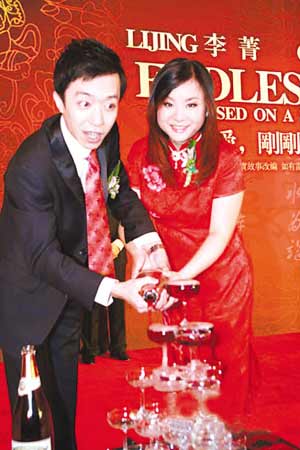 昨早10時(shí),郭德綱、于謙、小何、春妮等應(yīng)邀前來(lái)。郭德綱和于謙默契地以“白T恤蹭花了”的服裝出現(xiàn),頗為喜氣。他更在留言板上題詞“真是太刺激了!”當(dāng)天婚宴的主持由郭德綱擔(dān)當(dāng),他表示自己很少主持此類(lèi)婚宴,但臺(tái)上與新郎李菁一唱一和的搭檔風(fēng)趣幽默,令在場(chǎng)所有嘉賓開(kāi)懷不已。他更形容新娘“五大三粗”語(yǔ)含深意,據(jù)知情人透露,新娘極有可能已經(jīng)懷孕。