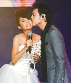楊丞琳慶功演唱會,特別嘉賓潘瑋柏帶來婚紗又獻吻。