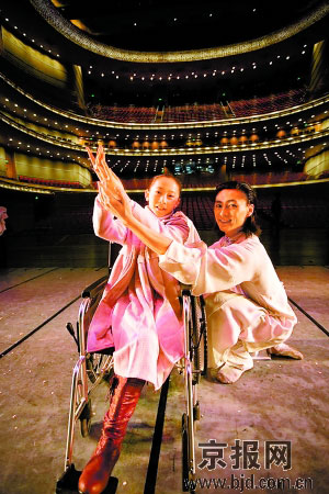 老朋友見面沒那么多客套話,呂萌直接就問到李月的學(xué)習(xí)情況,得知她馬上要考試了,呂萌還有些擔(dān)心李月沒有時間看自己的演出,李月爽快地表示沒問題,她已經(jīng)決定后天再來看《二泉映月》了。小姑娘雖然失去了一條腿,但她對舞蹈的熱愛沒有消失,昨晚特意向呂萌展示了她新學(xué)的舞蹈動作,呂萌馬上想到了一個動作和她配合,盡管臺下沒有觀眾,他們還是實現(xiàn)了在大劇院舞臺上的首次合作。呂萌說,殘奧會開幕式時李月剛做完手術(shù)不久,編排動作時要盡量繞開傷口,給當(dāng)時的表演帶來很大困難,F(xiàn)在李月身體恢復(fù)差不多了,再合作時他也敢發(fā)力了。