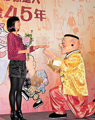 法拉表示自小都有閱讀《老夫子》,內(nèi)容簡(jiǎn)單易明,宣揚(yáng)正面能量及反映時(shí)事。問(wèn)到現(xiàn)實(shí)生活有沒(méi)有試過(guò)獲男士跪地求婚?她說(shuō):“沒(méi)有,第一次給了老夫子,若果遇到的人都像老夫子一樣風(fēng)趣都沒(méi)有問(wèn)題!