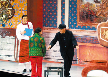 前日下午,春晚在中央電視臺(tái)演播廳進(jìn)行了第二次彩排,趙本山的新小品《不差錢》終于亮相。經(jīng)歷了小品一稿的“自斃”后,趙本山完全拋棄了“黑土”路線,布景由農(nóng)村家庭,改為“鐵嶺市最豪華的飯店”———他將在這里為孫女毛毛上星光大道的事情宴請(qǐng)畢福劍,菜肴是他身上掛著的蔥、蒜,著“蘇格蘭裙裝”的小沈陽(yáng)做侍應(yīng)生,故事由此展開。