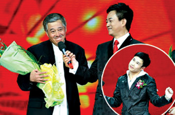 趙本山和小沈陽(yáng)的春晚小品《不差錢》,昨晚捧得了小品類觀眾最喜愛的節(jié)目一等獎(jiǎng),趙本山在得獎(jiǎng)感言時(shí)表示:“我最興奮的是,我兩個(gè)學(xué)生終于能站在這個(gè)舞臺(tái)上了,這讓我非常高興!毕噍^之下,倒是小沈陽(yáng)的得獎(jiǎng)感言很是簡(jiǎn)單,只有“感覺很美”四個(gè)字。按照慣例,獲獎(jiǎng)嘉賓要表演節(jié)目,而趙本山今年首次坐鎮(zhèn)觀眾席,讓徒弟小沈陽(yáng)獨(dú)自撐場(chǎng)面,“咱們這幾個(gè)誰(shuí)來(lái)都容易被哄下臺(tái)去,還是小沈陽(yáng)來(lái)吧!庇谑,小沈陽(yáng)獻(xiàn)唱了拿手曲目《大海》,把張雨生的聲音模仿得惟妙惟肖,贏得觀眾陣陣掌聲。一曲唱罷,下臺(tái)前還摔了一跤,觀眾們頓時(shí)笑翻。而董卿立即上臺(tái)給他圓場(chǎng):“小沈陽(yáng)是在逗咱們,其實(shí)他到哪表演都摔。”