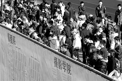 今年辦理復試手續(xù)分成三天之內(nèi)辦完,考生只要在自己復試的前一天來表演學院辦理復試手續(xù)即可。這種方式不僅分流了人群,也為那些初試完就回家,委托家人和朋友幫忙來看榜的考生提供了極大的方便。