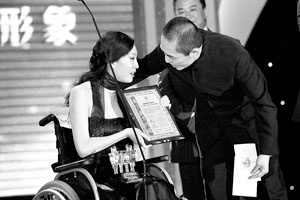 第二屆演藝名人公眾形象滿意度調(diào)查發(fā)布盛典昨晚在京舉行。曾因排演2008年北京奧運(yùn)會(huì)開(kāi)幕式受傷致殘的劉巖,獲得了中國(guó)年度舞蹈最佳表現(xiàn)女演員獎(jiǎng)。