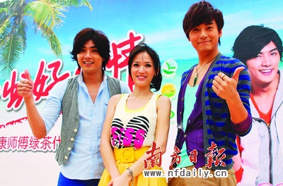 因主演《惡作劇之吻》、《命中注定我愛你》、《惡魔在身邊》等偶像劇而走紅的臺灣人氣偶像鄭元暢、陳喬恩、賀軍翔日前現身廣州出席某飲料代言活動。