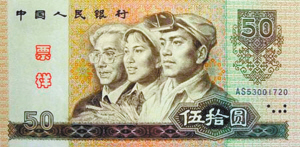 從網(wǎng)上曝光的專輯封面看,其設(shè)計(jì)與舊版50元人民幣十分類似。專輯封面上,雪村頭戴煉鋼工人眼鏡,和一個(gè)頭戴毛巾的胖男人、一個(gè)戴著眼鏡,科學(xué)家模樣的人并排出現(xiàn)在正中間。這一設(shè)計(jì)與舊版50元人民幣正面主景工人、農(nóng)民、知識(shí)分子頭像極其相似。50元人民幣左上角“中國人民銀行”的字樣在專輯封面上被改成了“雪村音樂評(píng)書”,右上角阿拉伯?dāng)?shù)字“50”的字樣被改成了專輯名《慶功酒》。