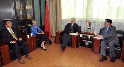 王永前向新西蘭客人重點(diǎn)介紹了甘肅省發(fā)展循環(huán)經(jīng)濟(jì)及落實(shí)國(guó)務(wù)院辦公廳關(guān)于進(jìn)一步支持甘肅經(jīng)濟(jì)社會(huì)發(fā)展47條意見的情況,并就甘肅省如何進(jìn)一步與基督城加強(qiáng)合作與交流交換了意見。他說,在《甘肅省與克萊斯特徹奇市人才交流合作備忘錄》的基礎(chǔ)上,甘肅將繼續(xù)邀請(qǐng)克市及塞爾溫區(qū)派遣學(xué)員參加甘肅省國(guó)際交流員研習(xí)班,并接受新西蘭學(xué)生利用中國(guó)政府獎(jiǎng)學(xué)金到蘭州高校學(xué)習(xí)深造。