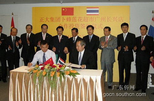 會見交流后,舉行了正大集團(tuán)與廣州高德置地公司、廣州市豪迪國際有限公司在天河區(qū)、白云區(qū)建設(shè)“卜峰蓮花購物中心”的簽約儀式,泰國副總理沙南、廣東省副省長萬慶良和謝國民等參加了見證。(喬新)