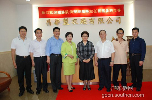 中新網(wǎng)7月28日電 據(jù)廣東僑網(wǎng)消息,7月26日,國務院僑辦主任李海峰在廣東省僑辦主任吳銳成的陪同下,專程來到廣州市番禺區(qū)潭洲鎮(zhèn)的僑資企業(yè)-昌泰國際集團有限公司考察。