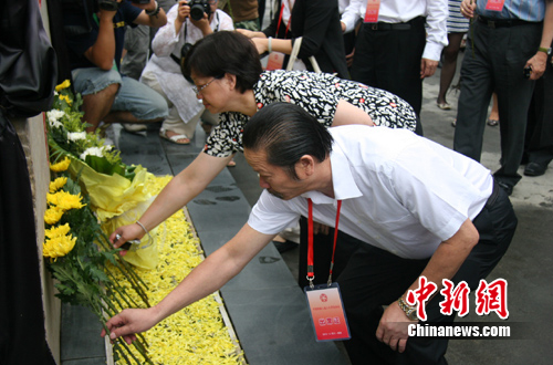 參加祭奠活動(dòng)的有中國僑聯(lián)常委、部分省市僑聯(lián)領(lǐng)導(dǎo)、為新北川中學(xué)捐資僑胞、新北川中學(xué)建設(shè)者等,他們自發(fā)排成一列在遇難者公墓前獻(xiàn)上菊花,并深深鞠了三個(gè)躬。