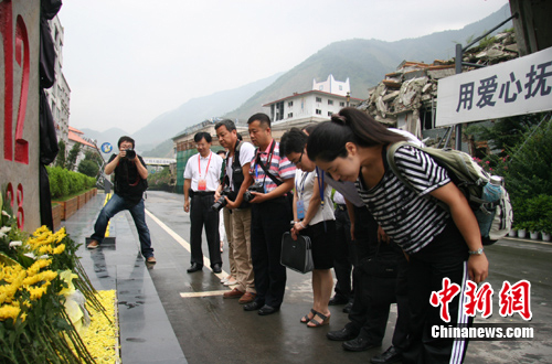 中新網(wǎng)北川8月17日電 (南若然)17日上午9時(shí)許,中國僑聯(lián)組織160余人來到北川縣城地震遺址,祭奠長(zhǎng)眠地下的五一二地震北川縣城遇難者。