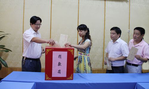 安徽省僑聯(lián)領(lǐng)導(dǎo)康曉萍、吳向明、王萬(wàn)祥與機(jī)關(guān)干部職工一起慷慨解囊,奉獻(xiàn)愛(ài)心。(谷新)
