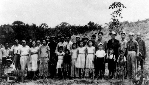 這張攝于1956年的照片,地點(diǎn)位于南田農(nóng)場愛國作業(yè)區(qū)的橡膠林前。