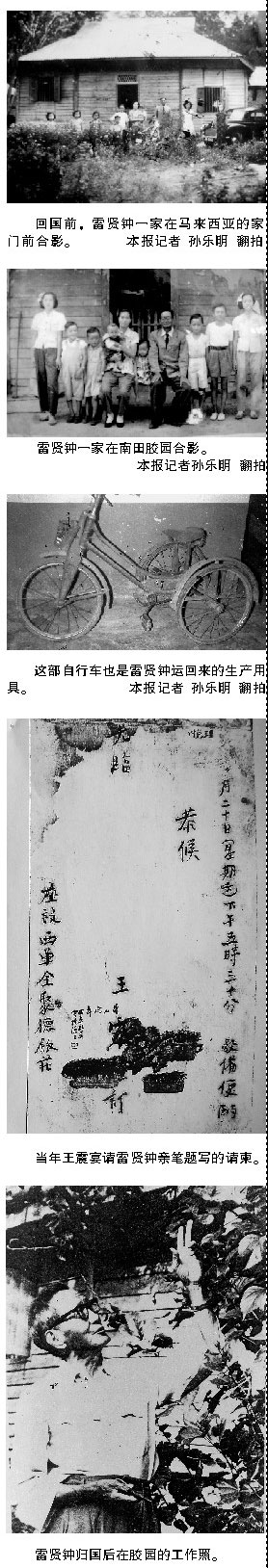 這張照片背后,我們不僅能感受到一位愛國華僑的眷眷之心,還可引申出更大的時(shí)代背景:以雷賢鐘為代表的大批愛國華僑,在新中國成立初期,為祖國橡膠事業(yè)做出過杰出貢獻(xiàn)。