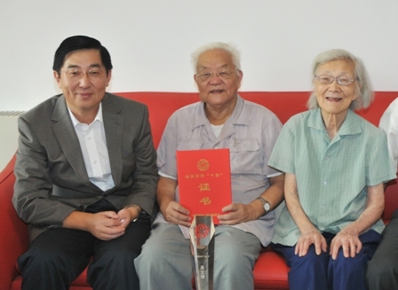 喬衛(wèi)向兩位院士介紹了中國(guó)僑聯(lián)組織及與國(guó)務(wù)院僑辦聯(lián)合開展“全國(guó)僑界十杰”評(píng)獎(jiǎng)的情況,仔細(xì)詢問(wèn)他們的工作生活和健康狀況。喬衛(wèi)代表中國(guó)僑聯(lián)向吳文俊院士和顏鳴皋院士頒發(fā)了“全國(guó)僑界十杰”獎(jiǎng)杯和證書,并祝愿兩位院士健康長(zhǎng)壽,生活愉快。