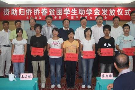 中新網(wǎng)9月21日電 9月15日,廣西僑聯(lián)、廣西華僑愛心基金會舉行資助歸僑僑眷貧困學(xué)生助學(xué)金發(fā)放儀式,廣西自治區(qū)歸僑僑眷貧困大學(xué)生、高中生214名獲得資助,助學(xué)金總金額30.1萬元。這是廣西自治區(qū)僑聯(lián)連續(xù)資助全區(qū)歸僑僑眷貧困生的第三年,也是廣西華僑愛心基金會資助全廣西自治區(qū)歸僑僑眷貧困生的第一年。
