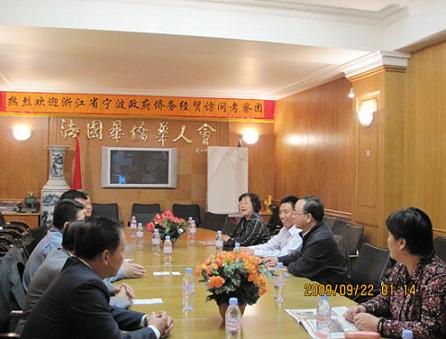 在法國期間,訪問團拜訪了法國華僑華人會,F(xiàn)任主席陳勝武及副主席張過祥、陳其躍等負責人,熱情接待了訪問團,相互進行了座談;訪問團還參觀了位于巴黎市中心四區(qū)的會所、文化中心,及中華文化學校。通過座談參觀,訪問團了解到,近年來,隨著中國國力迅速增長,旅法華人地位不斷提高,華人也在改變過去不關心政治的慣例,正在努力融入當?shù)刂髁魃鐣。訪問團與法國華僑華人會互贈了禮品;法國歐華歷史學會會長葉星球還向訪問團贈送了其撰寫的《法國華人三百年》一書。
