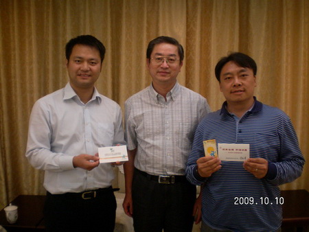 崔明華聘請(qǐng)吳昊、劉軍會(huì)長(zhǎng)擔(dān)任上海市海外交流協(xié)會(huì)理事,并向客人贈(zèng)送了2010年上海世博會(huì)“華僑華人專用紀(jì)念門票”。(上海市僑辦)