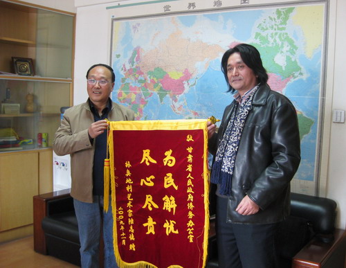 中新網(wǎng)11月12日電 據(jù)甘肅省僑辦消息,11月4日上午,旅奧華僑陸志德專程為甘肅省僑辦送來(lái)錦旗一面,上書(shū)“為民解憂,盡心盡責(zé)”。