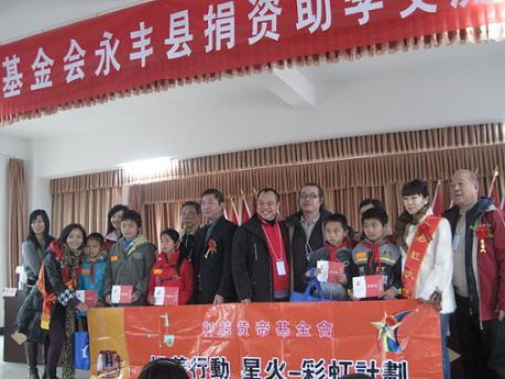 香港龍山基金會(huì)屬于非營(yíng)利性慈善組織,由江西省港澳區(qū)政協(xié)委員鄧國(guó)容先生會(huì)同有識(shí)之士創(chuàng)建,多年來(lái)該基金會(huì)一直關(guān)注永豐縣教育事業(yè)、關(guān)注永豐縣貧困學(xué)生。星火——彩虹計(jì)劃是由龍山基金會(huì)和軒轅黃帝基金會(huì)聯(lián)手創(chuàng)辦的助學(xué)扶貧計(jì)劃,主要是扶持江西省革命老區(qū)、少數(shù)民族地區(qū)及貧困山區(qū)的文教事業(yè)。自2004年起,星火——彩虹計(jì)劃已經(jīng)組織了多次“贛港心連心”江西訪問(wèn)交流團(tuán)來(lái)該縣開(kāi)展捐資助學(xué)活動(dòng)。累計(jì)已援建龍岡畬族鄉(xiāng)中心小學(xué)教學(xué)樓、瑤田鎮(zhèn)三灣小學(xué)軒轅黃帝教學(xué)樓、八江鄉(xiāng)高家小學(xué)軒轅黃帝教學(xué)樓、潭頭鄉(xiāng)楊梅江小學(xué)白求恩教學(xué)樓,資助金額42萬(wàn)元;資助全縣21個(gè)鄉(xiāng)鎮(zhèn)貧困學(xué)生400人次,資助金額12萬(wàn)元;捐助教學(xué)用品及學(xué)生學(xué)習(xí)、生活用品折合人民幣達(dá)5萬(wàn)多元。