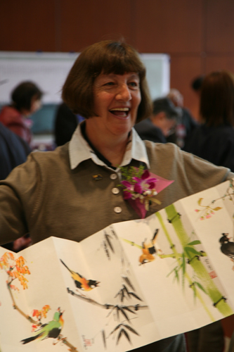 澳大利亞人宣月學(xué)習(xí)中國畫已經(jīng)十年,現(xiàn)今她是澳洲嶺南畫會會員。她說:“之所以參加華人文化藝術(shù)節(jié),是因?yàn)槲业闹袊蠋熛M铱纯粗袊嫾业淖髌。我的老師希望我不但學(xué)習(xí)繪畫,還應(yīng)該學(xué)習(xí)更多的中國文化!