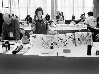 國際友人對筆會也是情有獨鐘。來自澳大利亞的博理查和宣月,已跟中國老師林伯墀學(xué)中國畫達10年之久。林老師讓宣月不但學(xué)中國畫,還要學(xué)更多的中國文化。她這次來想通過參與交流,開闊視野,取長補短,使自己的繪畫藝術(shù)再上一層樓。她還高興地展示了自創(chuàng)的花鳥畫集,并和博理查向藝術(shù)節(jié)敬獻了現(xiàn)場創(chuàng)作的“鮮花綻放圖”和“袋鼠翹首觀望圖”。來自美國西雅圖的畫家,把自己創(chuàng)作的一幅長達十幾米、影響類似中國《清明上河圖》的《西雅圖美景》大畫贈給了華人文化藝術(shù)節(jié)組委會,感動了在場的海內(nèi)外僑胞。