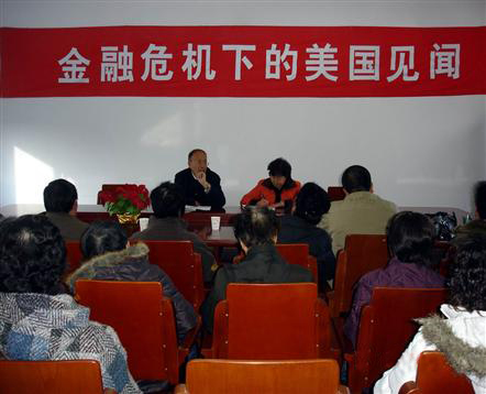 中新網(wǎng)12月10日電 據(jù)連云港市僑聯(lián)消息,近日,連云港市僑聯(lián)邀請剛從美國探親歸來的連云港市新華僑華人、留學(xué)人員眷屬聯(lián)誼會(huì)副會(huì)長蘆旭,作了一場《金融危機(jī)下的美國見聞》專題講座。各縣區(qū)僑聯(lián)負(fù)責(zé)人,市僑聯(lián)機(jī)關(guān)干部及歸僑僑眷代表50余人參加。