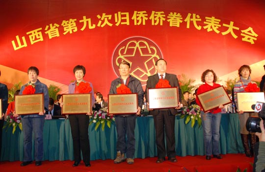 在開幕式上,張寶順、王君、薛延忠和王永樂對(duì)山西省外事僑務(wù)辦公室、山西省僑聯(lián)聯(lián)合表彰的四十九名全省歸僑僑眷先進(jìn)個(gè)人,山西省僑聯(lián)表彰的十個(gè)全省僑聯(lián)系統(tǒng)先進(jìn)集體和二十五名全省僑聯(lián)系統(tǒng)先進(jìn)個(gè)人頒發(fā)獎(jiǎng)狀。