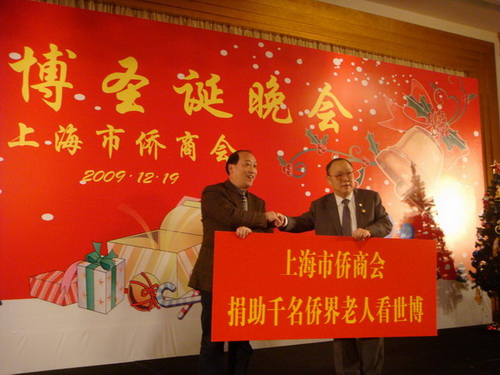 中新網(wǎng)12月24日電 據(jù)上海市僑辦消息,12月19日晚,上海市僑商會(huì)舉辦了圣誕聯(lián)誼晚會(huì)。會(huì)上,上海市僑辦主任崔明華和上海市僑商會(huì)常務(wù)副會(huì)長屠海鳴為“上海市僑商會(huì)世博接待服務(wù)部”揭牌。上海市僑辦副主任劉建平、上海市僑商會(huì)副會(huì)長盧國富在會(huì)上啟動(dòng)了“上海市僑商會(huì)捐助千名僑界老人看世博活動(dòng)”。